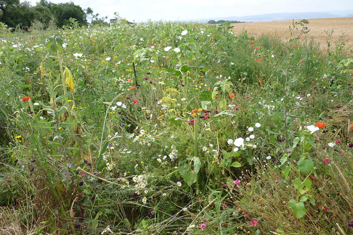 Die Blühstreifen entlang der Einfallsstraßen nach Erfurt haben ihre volle Pracht entwickelt und tun eigentlich genau das, wofür die Landwirtinnen und Landwirte sie angelegt haben: sie begrüßen die Besucherinnen und Besucher der Blumenstadt Erfurt zur BUGA und erfreuen Gäste wie Einheimische gleichermaßen. Und nicht zuletzt sind sie Tummelplatz für viele Insekten und erhöhen die Biodiversität.