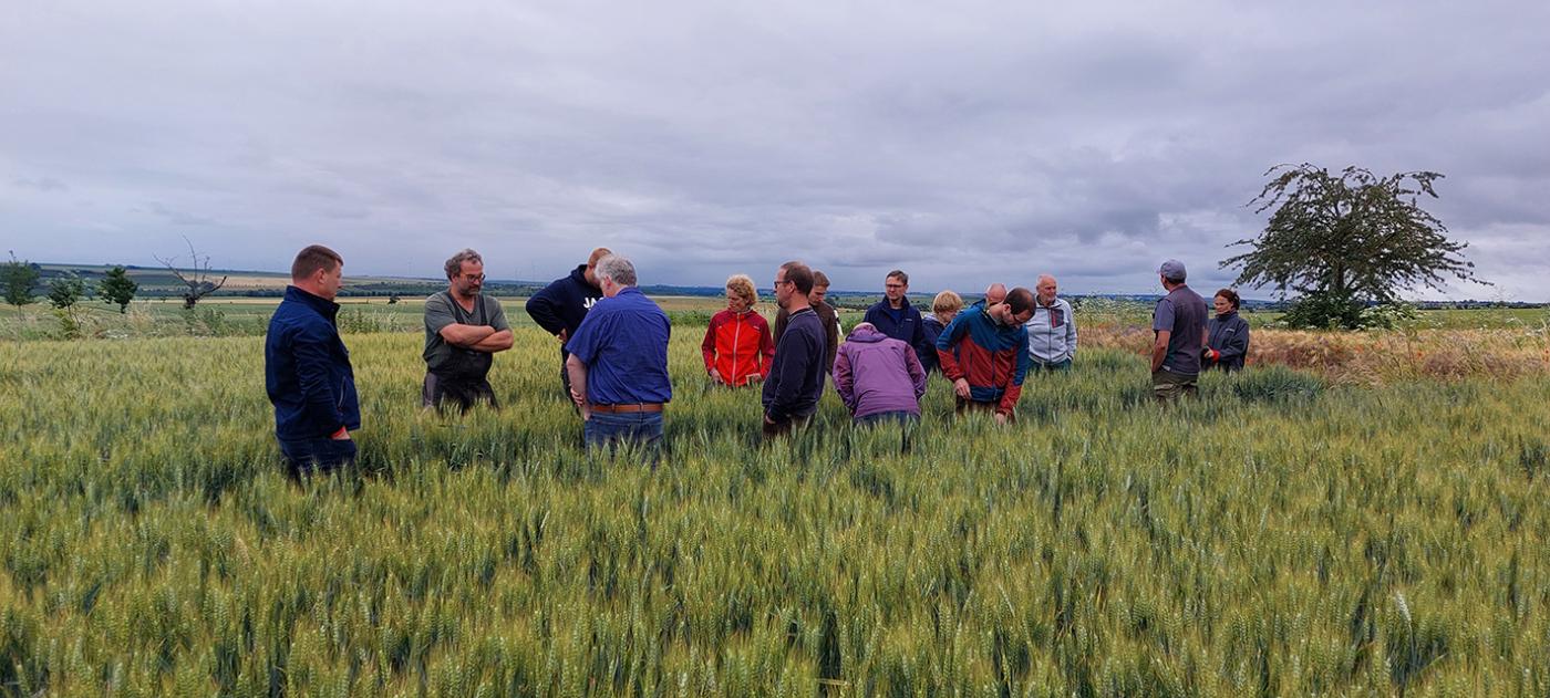 Da das Projekt "Strip Till-Kooperation Thüringen" sich zum Ziel gesetzt hat, die Erfahrungen und Kenntnisse dieser Verfahrensweise innerhalb Thüringens mit den zum Teil deutlich unterschiedlichen ackerbaulichen und klimatischen Voraussetzungen nicht nur zu sammeln, sondern auch den Landwirten zur Verfügung zu stellen, nahm der Vorstand des Kreisverbandes dies zum Anlass, das Verfahren zur diesjährigen Flurfahrt stärker in den Fokus zu rücken. So fanden sich die Interessierten am 19. Juni im Klostergut Bonnrode ein. Hier referierten der Ackerbaureferent des TBV und Projektassistent Andre Rathgeber und Britt Pagels von der U.A.S. über die Projektarbeit und die bereits gewonnenen praktischen und wissenschaftlichen Zwischenergebnisse. Die Landwirte Kai Steinacker und Matthias Joest, die bereits seit einigen Jahren die Flächen ihrer Unternehmen in Oberbösa und Bilzingsleben nach diesem Verfahren bewirtschaften, berichteten im Anschluss über ihre gesammelten Erfahrungen. Sie bestätigten an einigen Beispielen die mit der Streifenbearbeitung benannten Verbesserungen wie Erosionsminderung, bessere Bodenstruktur, bessere Wurzeldurchdringung und Bodenfruchtbarkeit, eine präzisere Nährstoffversorgung und auch eine verringerte Wasserverdunstung. Da der Boden nicht flächendeckend mit mehreren Arbeitsschritten, sondern lediglich einmal in einem schmalen Streifen bearbeitet und die Saat eingebracht wird, sind insgesamt Arbeitszeit- und Kostenaufwand erheblich verringert.