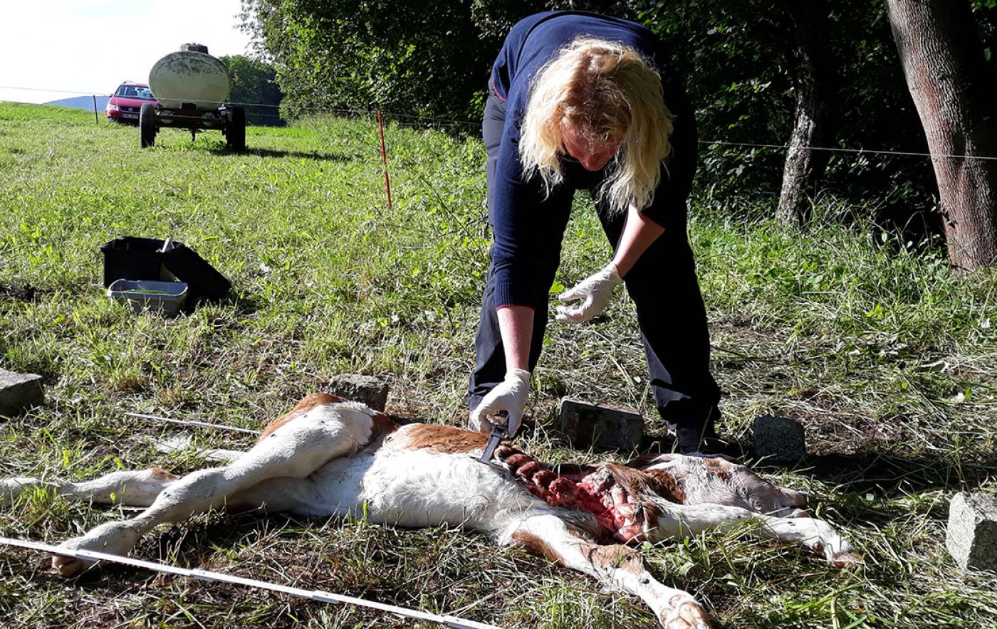 Auf einer Weide zwischen Fischbach und Kaltennordheim kam es Mitte vergangener Woche zu einem Nutztierriss. Dabei handelt es sich um ein Kalb, das in der Nacht zuvor geboren wurde und am nächsten Tag mit schweren Verletzungen im Brust- und Schulterbereich tot auf der Weide lag. Ganze Hautstücke wurden herausgerissen. Nachdem die Tierhalter den Kadaver fanden, kontaktierten sie umgehend das Kompetenzzentrum Wolf, Biber und Luchs des Thüringer Ministeriums für Umwelt, Energie und Naturschutz (TMUEN). Nutztierrisse müssen unmittelbar nach dem Rissereignis untersucht werden, um verwertbare Speichelproben nehmen zu können. Der angeforderte Gutachter traf allerdings erst nach zwei Tagen am Ort des Rissgeschehens ein. In der Zwischenzeit hatten die Tierhalter das Kalb von der Weide geschafft und gelagert – auf Anweisung des Amtstierarztes.