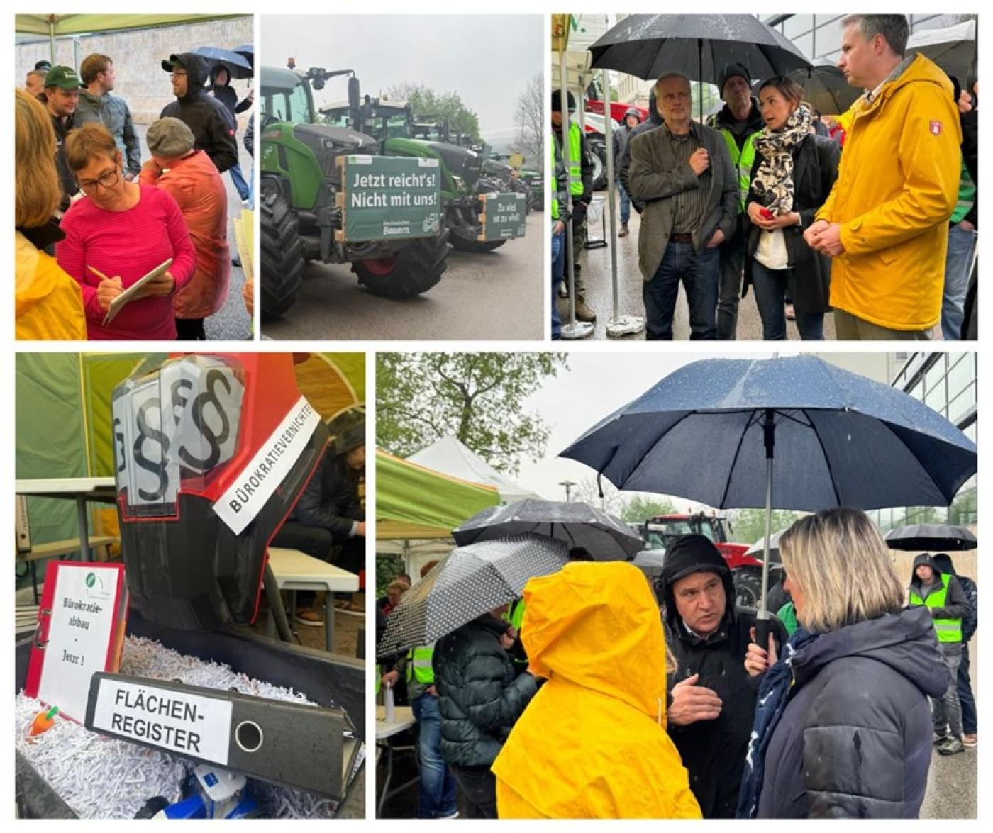 Trotz des Dauerregens, der für die Landwirte auf den Flächen ein Segen war, kamen an die 70 Bauern vor den Landtag. Vielen Dank an dieser Stelle für die Unterstützung mit Maschinen und für die Diskussionsfreudigkeit.